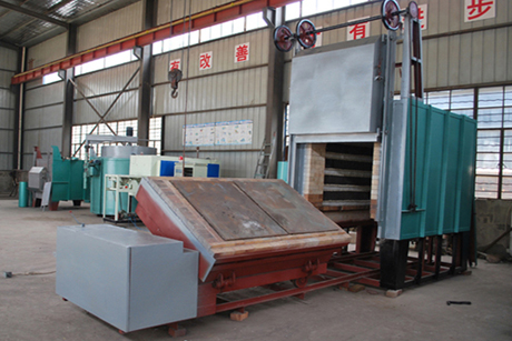 台车式电阻炉主要用于大型工件、高铬、高锰钢铸件淬火、退火、回火、时效等热处理,以及灰口铸铁、球墨铸铁、轧辊、钢 球、破碎机锤头、耐磨衬板淬火、正火、回火..